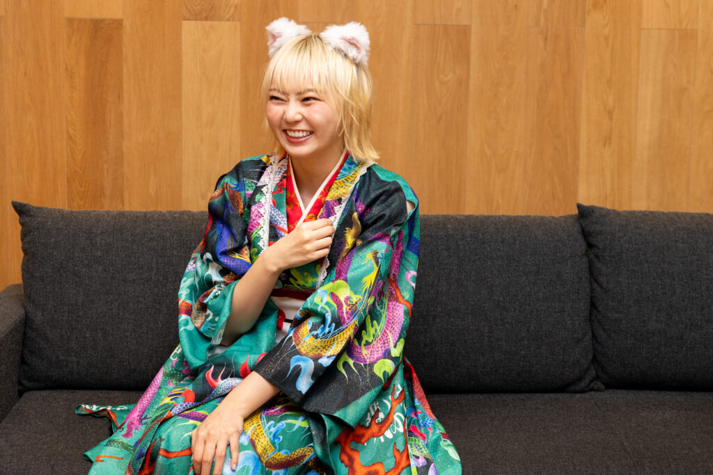 そしたら担当の方が、私が着ていた衣装を見て「いいね!」みたいになって、「君、その衣装で歩いちゃいなよ!」って言ってくださって、「はい、君、ここ歩いて」って言われて、「あ、じゃあ歩かせてもらいます」って感じで。笑